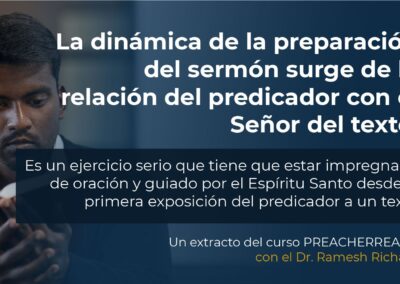 ¿Es usted pastor y predicador que debe predicar con regularidad? ¿Necesita un método confiable para la Predicación Bíblica? El Dr. Ramesh Richard, basándose en el método de Esculpir las Escrituras, probado en el campo y ampliamente reconocido, le enseñará a preparar mensajes bíblicos que cambian vidas. Aprenda a simplificar el proceso de preparación de un sermón. Entregue sermones bíblicamente fieles y relevantes para su audiencia. Este curso incluye un Certificado en Predicación Bíblica.